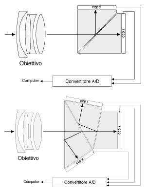 ricorrere a 2 o a 3 sensori CCD utilizzati insieme. In figura è