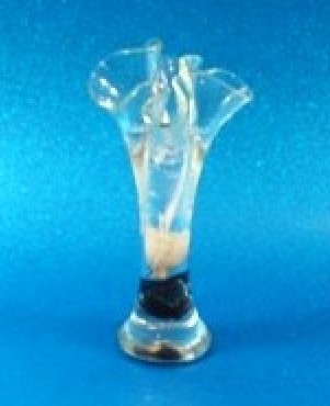 foto | 10002.03 | Vasetto per fiori in vetro profumato con cera gel e rosellina bianca all'interno | h= 13 cm - d= 4 cm p= 100 gr |