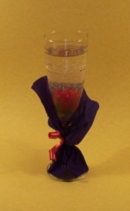 foto | 10009.01 | Bicchiere da liquore basso con cera gel colorata e profumata e bocciolo di rosa rossa inserito all'interno | h=7 cm - d= 4.5 cm p= 90 gr |