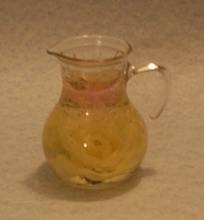 foto | 10005.01 | Caraffa 0.25 l. da vino con cera gel colorata e profumata e rosa bianca all'interno | h=11 cm - p=420 gr | 1 | 13.94 | Lit. 27.000 |