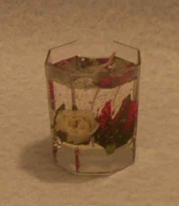 foto | 10006.01 | Bicchiere ottogonale da acqua con rose in cera gel profumata | h=8 cm - d=7 cm p=300 gr |