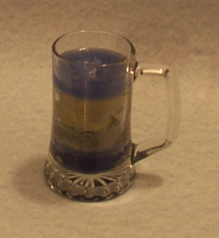 foto | 10007.01 | Boccale di birra con cera gel inserita in due strati di cera colorata e profumata e rosa nel mezzo | h=12 cm d=6 cm | 1 | 12.39 | Lit.24.000 |
