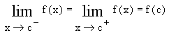 Una funzione f(x) si dice continua in un punto x=c se esistono i due limiti, destro e sinistro, in tale punto,