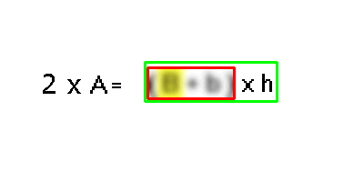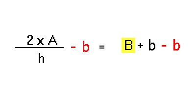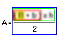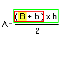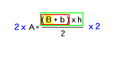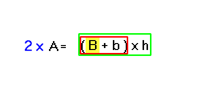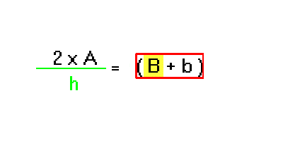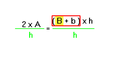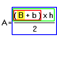Questa somma, a sua volta, è bloccata da un'altra operazione, una moltiplicazione: (B + b) x h; riquadriamo anche questa: è la scatola 2 - moltiplicazione per h.
