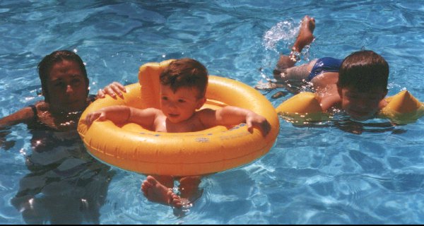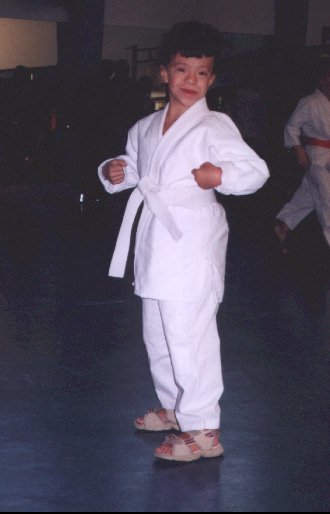 On February 2002 he enjoyed a swimming class. He liked it a lot and he was very committed to it but we had to stop it after 16 months for the continuous ear infections. To go on doing some sport he joined a Judo class in September 2003.