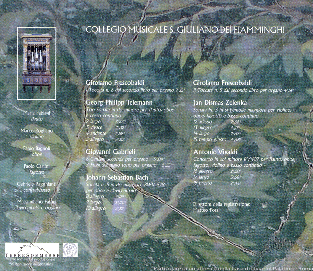 Met vreugde kunnen wij onze lezers melden dat het “Collegio Musicale San Giuliano dei Fiamminghi” een nieuwe CD heeft uitgebracht. Onder de stuwende kracht van Massimiliano Faraci, artistiek directeur van de concertcyclus van Sint-Juliaan-der-Vlamingen, Pater Hugo Vanermen, mSC, Rector en met de financiële steun van de “Fondazione Montanelli Bassi”, de “Banca Toscana” en de “Koninklijke Belgische Kerk en Stichting Sint-Juliaan-der-Vlamingen” kunnen wij deze CD aanbieden met muziek van Girolamo Frescobaldi, Georg Philipp Telemann, Giovanni Gabrieli, Johann Sebastian Bach, Jan Dismas Zelenka en Antonio Vivaldi.