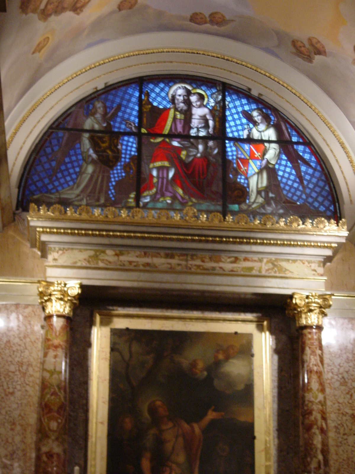Jean-Baptiste Capronnier (1814-1891) - glasraam - Sint-Jozef met kind en 2 engelen (1851)