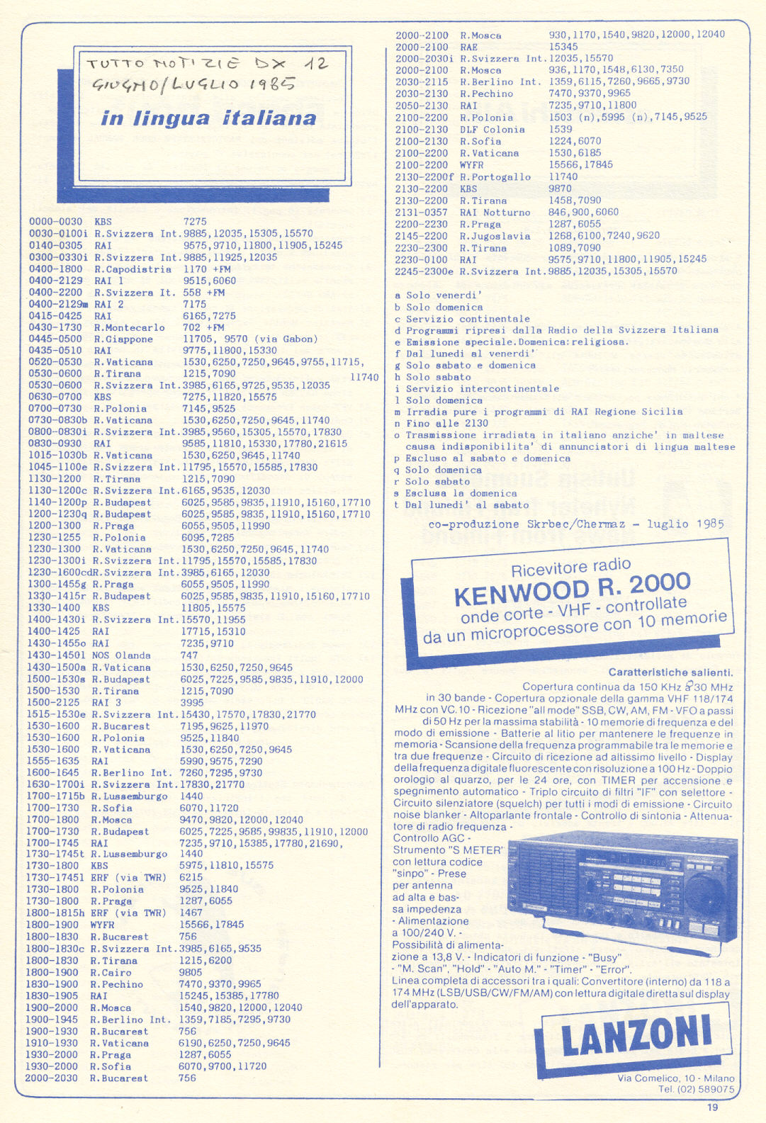 Anche la rivista Radio Kit Elettronica Edita da Edizioni C&C ha iniziato la pubblicazione delle Emittenti in Lingua Italiana dal N° 7/8 di luglio/agosto 2012, a cura di M. Casali.
