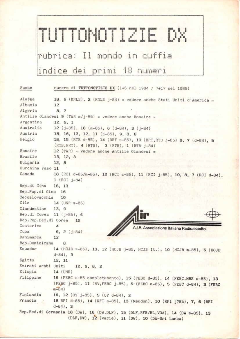 L’AIR - Associazione Italiana Radioascolto, fondata nel 1982 - propone ai soci di cambiare intestazione al proprio mensile, passare dal 1° Maggio 1984 dalla "Rivista Onde Corte" al Tuttonotizie Dx.