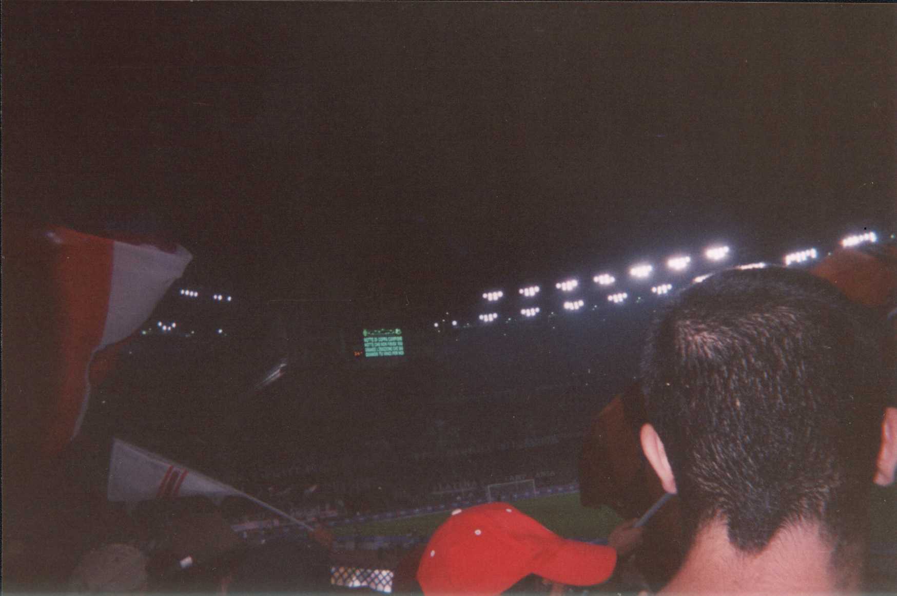 I cori juventini sono sporadici, assenti dopo i risultati di parità sia sull'1-1 sia sul 2 a 2... La partita è bellissima e combattuta... . Sul 2 a 1 per gli infami assistiamo allibiti a una loro ola... quasi fosse un'amichevole. Lo schifo ci assale ma continuiamo a cantare imperterriti per i nostri colori! in alto le mani, fuori il cuore... abbattiamo il Delle Alpi!!!!! E così raggiungiamo il pareggio... al seguito del quale ci saranno 20 minuti di dominio di tifo assoluto... che al solo pensiero mi viene la pelle d'oca....... "Che sarà sarà.. ovunque ti seguirem ovunque ti sosterrem... e sarà sarà...".