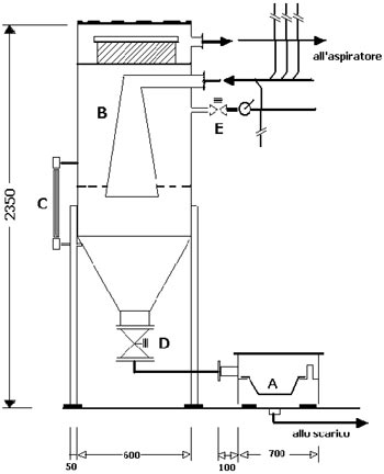 Separatore modello SEPU a scarico automaticoTramoggia per la decantazione dei solidiCiclone a fondo umidoSonde di livello H 20Elettrovalvola di fondoElettrovalvola a solenoide