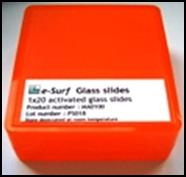 E-surf glass slides are designed to covalently immobilize amino-modified DNA and protein for Microarrays applications.