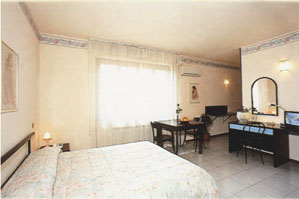 gestaltete Zimmer, ausgestattet mit Bad, Klimaanlage, Direktwahltelefon, Farbfemnsehgeràt und Minibar.